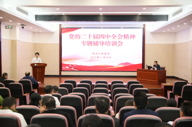 为深入学习贯彻党的二十届四中全会精神,进一步凝聚推动医院高质量发展的强大合力,11月20日下午,我院组织学习贯彻党的二十届四中全会精神专题辅导,邀请市委党校赵兴银校长主讲。院领导、党务干部、职能部门负责人、临床科主任、护士长、递进培养干部等300余人参加了会议。