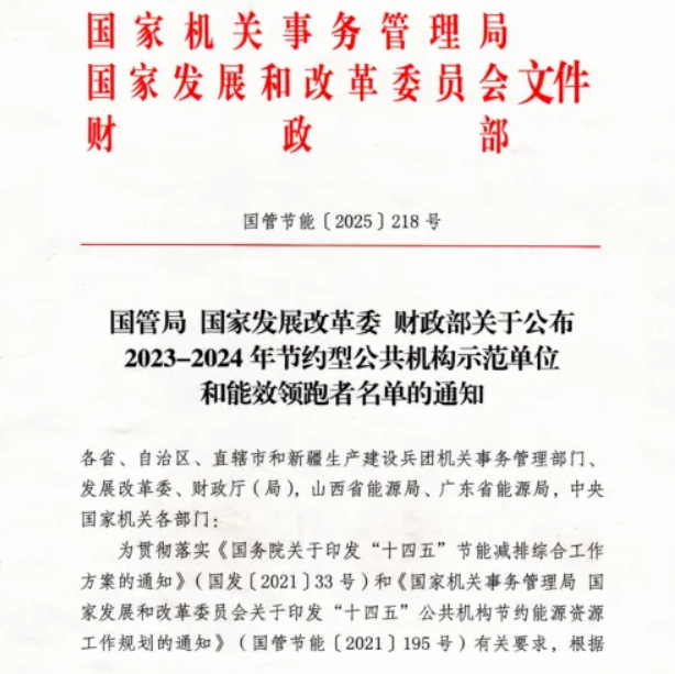 近日,国家机关事务管理局、国家发展改革委和财政部联合公布了2023-2024年全国节约型公共机构示范单位和能效领跑者名单,我院荣获“公共机构能效领跑者”称号。